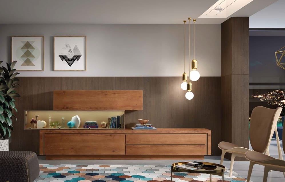 - Elige diseños con pantallas que proyectan luz cálida o en acabados dorados para elevar la decoración, incluso cuando están apagadas.